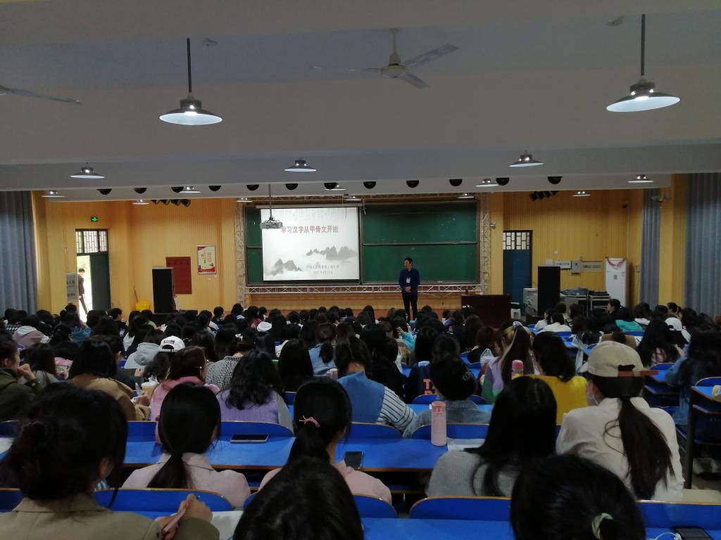 2021年4月12日上午,中国文字博物馆的杨军辉科长(馆员)在A18-201为国产va无马网站师生做了一场《学习汉字从甲骨文开始》的报告。