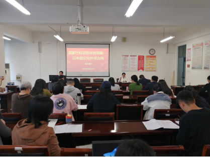 为提升教师国家社科基金项目申报能力,推动学科建设与学术研究发展,4月21日,国产va无马网站邀请外交学院武波教授开展“国家社科项目申报策略—以中国文化外译为例”专题报告,副院长杜丽霞主持,全体教师参会。