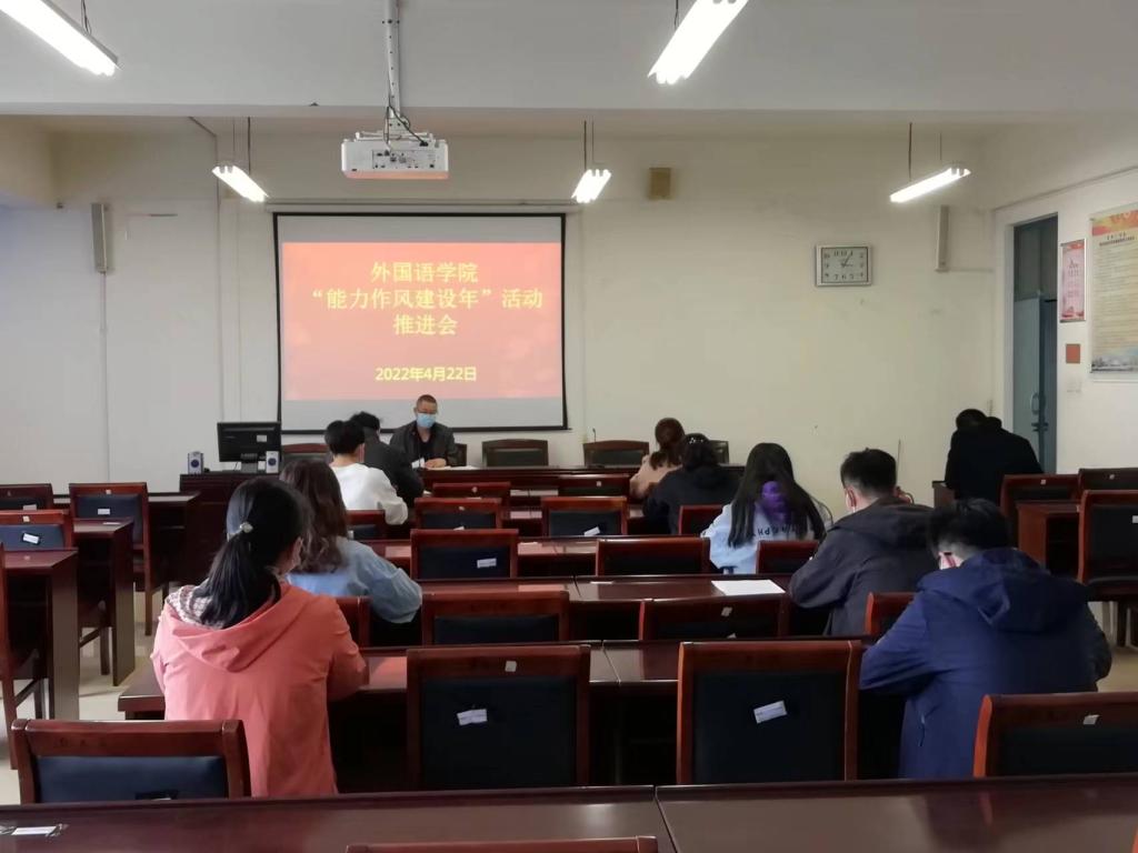 4月22日下午,国产va无马网站在A-10 205会议室召开 “能力作风建设年” 活动推进会,对开展“能力作风建设年”活动进行再安排、再部署。党总支书记郭强主持会议,学院全体领导班子成员、各教工党支部书记、全体辅导员参加了会议。