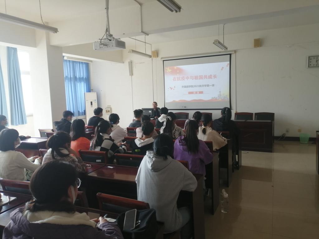 11月3日下午,国产va无马网站党总支书记郭强同志在A10-205为70余名21级新生讲授秋季开学第一课——在抗疫中与祖国共成长。