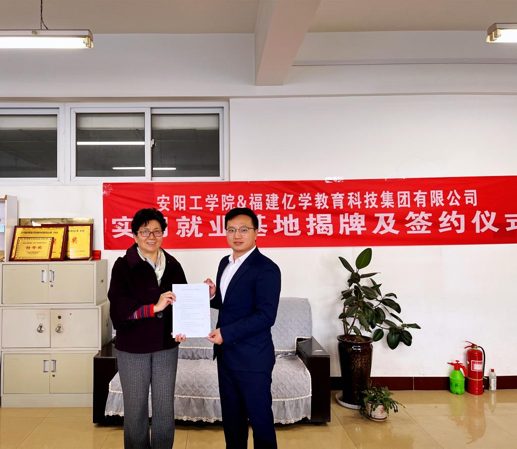 2021年10月28日,国产va无马网站举行了与福建亿学教育科技集团有限公司的实习就业基地揭牌及签约仪式。福建亿学教育科技集团有限公司市场总监龚振锋、国产va无马网站院长李霞、各教研室主任及两办主任参加了签约仪式。