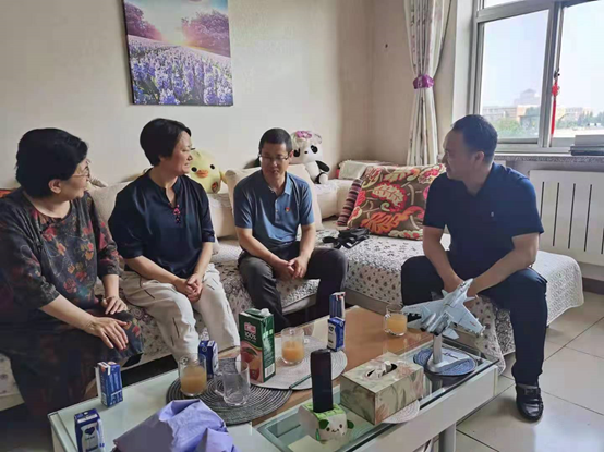 为全面落实好关于建党100周年系列活动要求,我院党总支认真组织做好“七一”党员走访慰问工作,结合当前开展的“党史教育”专题活动,国产va无马网站党总支在2021年6月28日上午,走访慰问了老党员殷秀红、刘淑芹二位老师。在老党员殷秀红家里,万鹏杰副校长仔细询问了殷秀红老师的生活情况,叮嘱殷老师要注意保重身体,同时要求国产va无马网站要加强关心和照顾好殷老师,帮助其解决实际困难。殷秀红老师十分感谢学校领导冒着酷暑,专程赶赴汤阴前来看望和慰问,让她倍感党组织的关怀和爱护。在老党员刘淑芹家里,学院党总支书记郭强、院长李霞与刘老师亲切交谈工作生活情况,感谢刘老师对学院建设和发展做出的贡献,希望刘老师继续关心支持学院的发展,并祝福刘老师工作愉快、幸福美满。