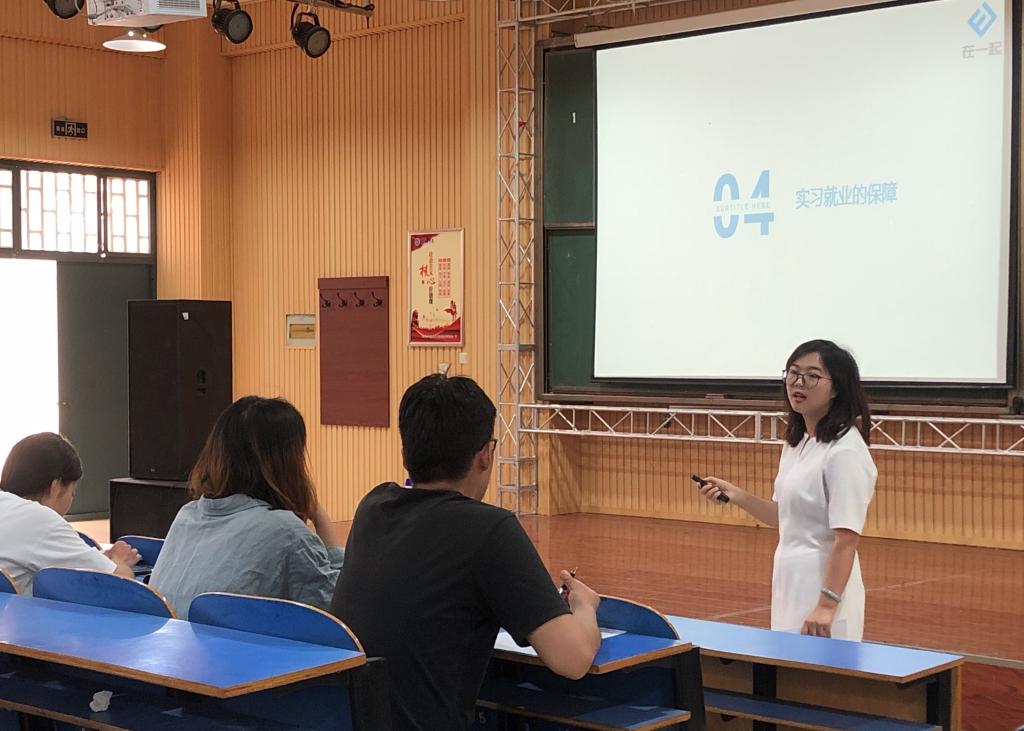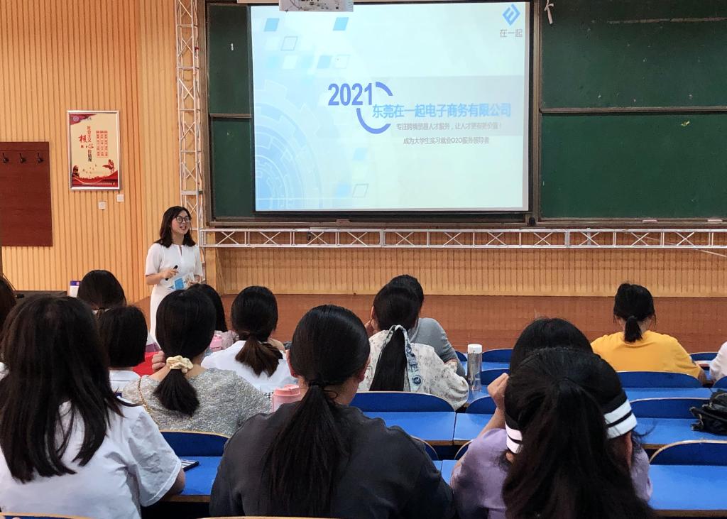 2021年5月26日上午10点,国产va无马网站邀请东莞在一起电子商务有限公司在A18-201教室举办企业宣讲会,2021届毕业生代表参加本次宣讲会。