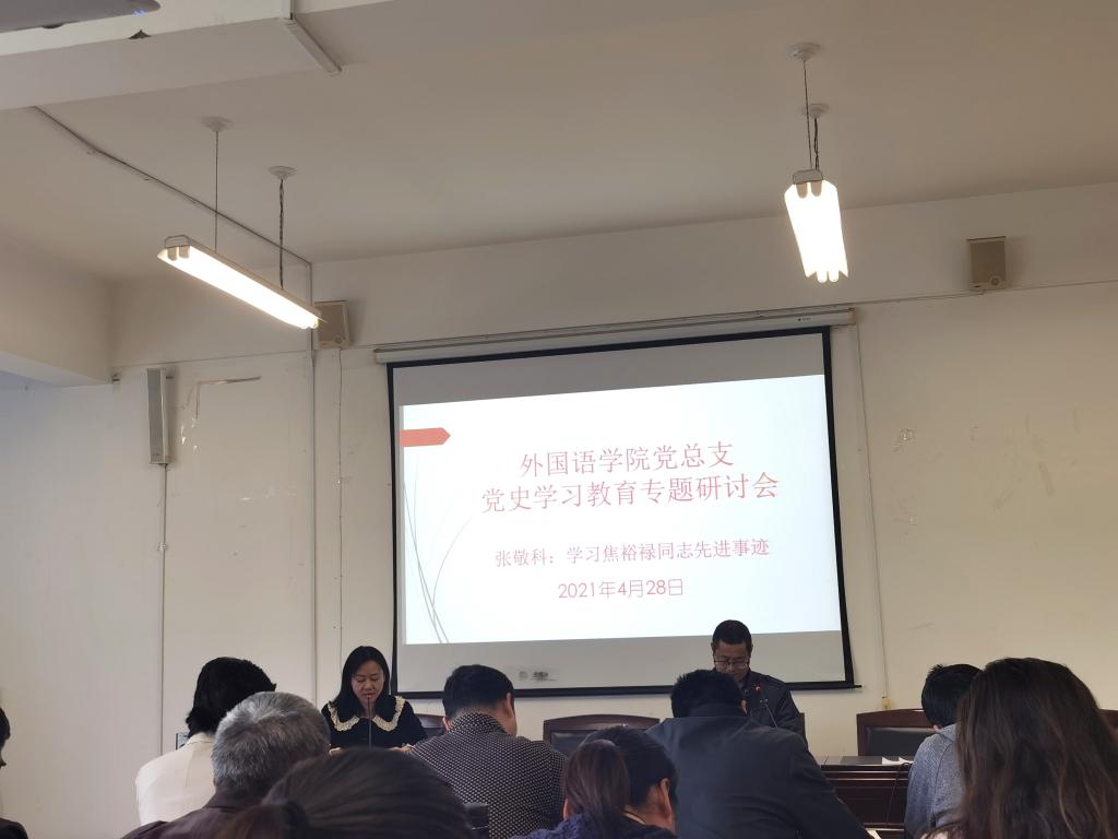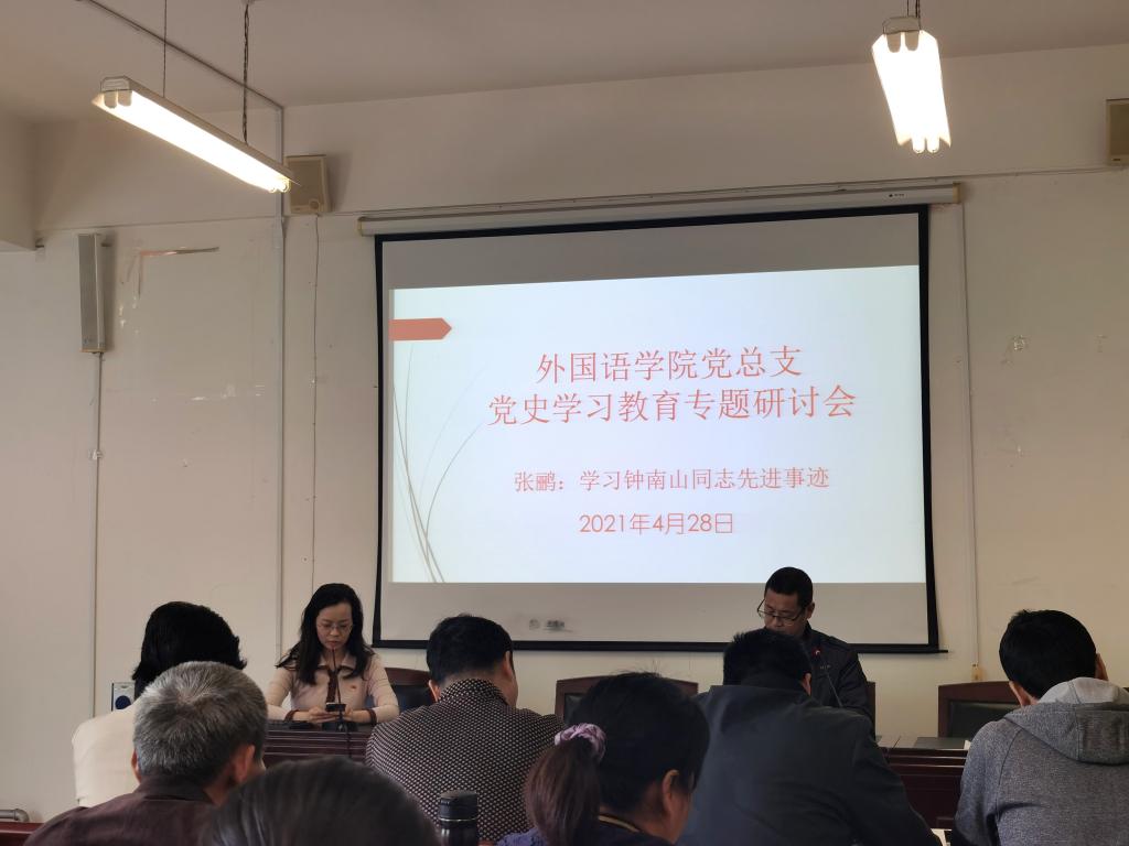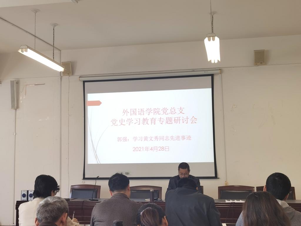 4月28日下午,国产va无马网站党总支召开党史学习教育专题研讨会,学院领导班子成员、全体党员教师参加会议,党总支书记郭强主持会议。