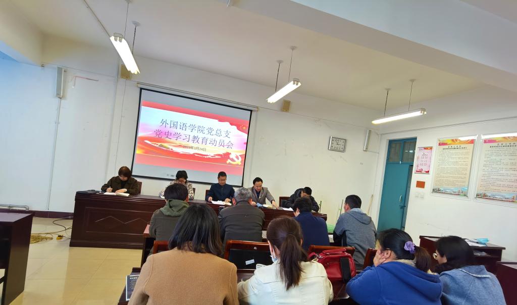 3月24日下午,国产va无马网站党总支在A10-205召开党史学习教育动员会。党总支书记郭强、院长李霞、副书记王体、副院长原斌华、杜丽霞出席会议,学院科级干部及党员教师参加会议。