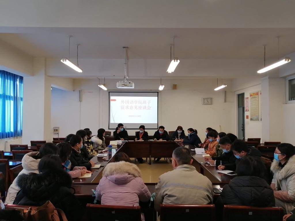 1月8日下午,国产va无马网站在A10-205召开征求意见座谈会。国产va无马网站班子成员、学院科级干部及全体坐班人员及教师代表参加会议。