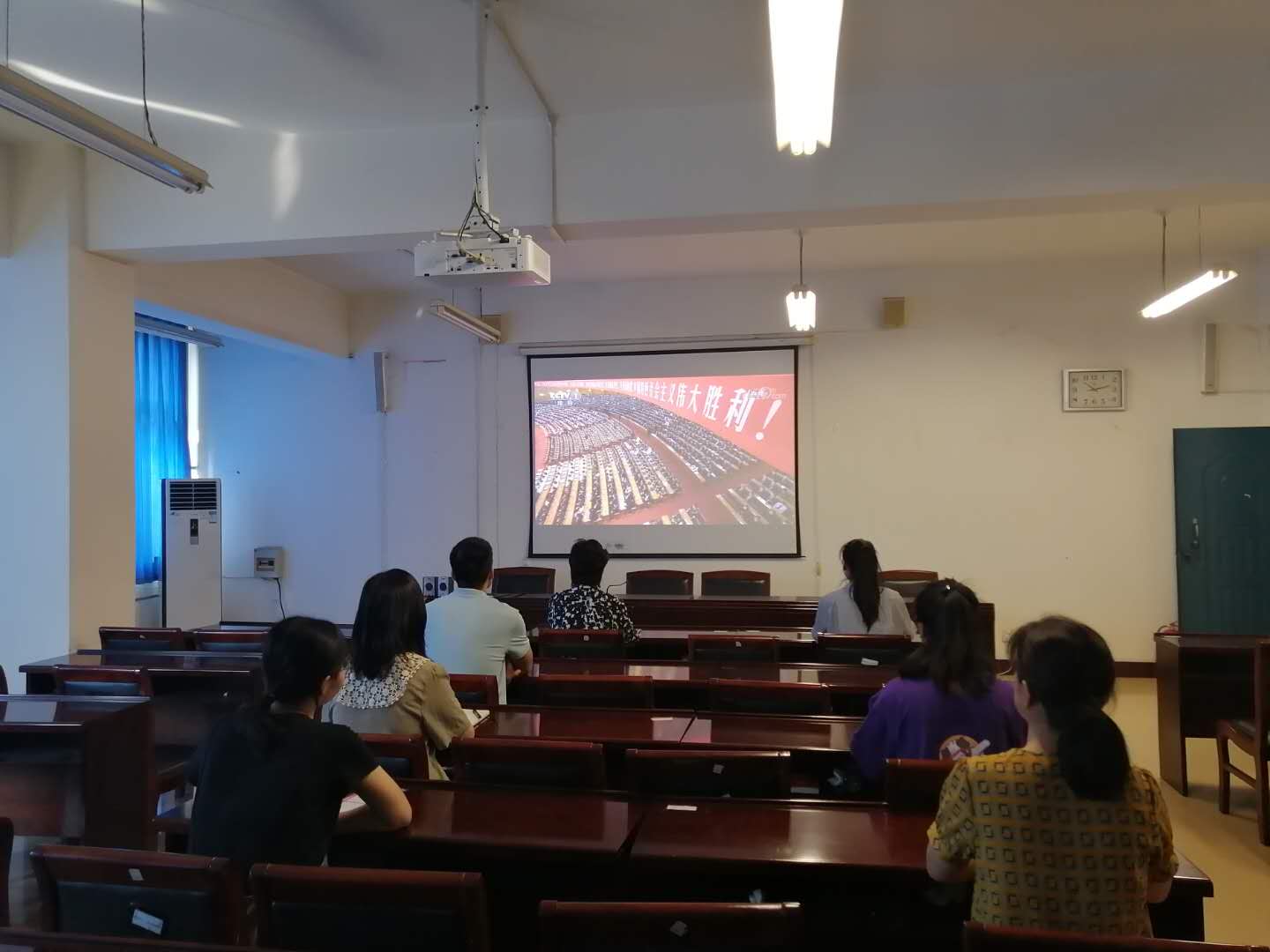 2020年9月8日上午,国产va无马网站组织教师在A10—205室观看全国抗击新冠肺炎疫情表彰大会。领导班子及部分教工集中观看了本次表彰大会。