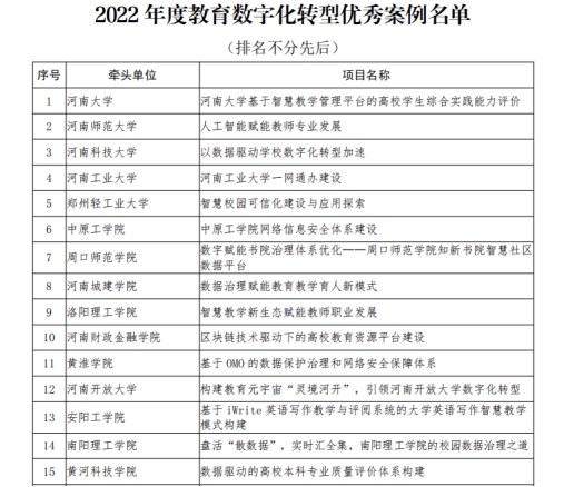 在最新公布的《河南省教育厅办公室关于公布2022年度教育数字化转型优秀案例》的通知中,我院教师撰写的“基于iWrite英语写作教学与评阅系统的大学英语写作教学智慧教学模式构建”经过层层选拔、公开展示、会议评审等,在众多案例中脱颖而出,获得“优秀教学案例”。