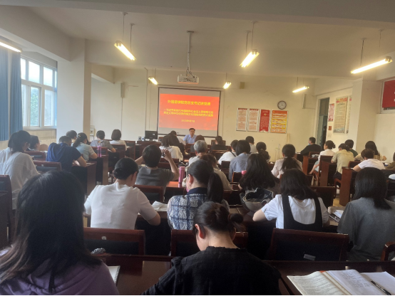 6月7日下午,国产va无马网站党总支书记王孟以“习近平新时代中国特色社会主义思想是马克思主义同中华优秀传统文化相结合的伟大成果”为题,为国产va无马网站全体教师上了一堂生动的党课。
