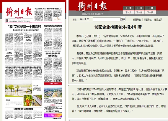 经过9天跨境电商岗前培训,6月19日,国产va无马网站跨境电商实习基地共建单位——河南澳得电子商务有限公司带领11位同学前往浙江衢州,参加衢州市网商协会跨境电商定制人才精准匹配会。11位同学均已成功入职跨境电商岗位。6月22日,衢州日报对此次专场双选会做了头版专题报道。