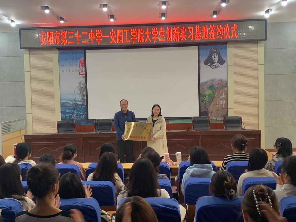 10月16日,安阳工学院与安阳市第三十二中学在该中学会议室举行了大学生创新实习基地签约仪式。参加签约仪式的有安阳市第三十二中学副校长岳卫忠和国产va无马网站副院长杜丽霞以及安阳市第三十二中学的领导和老师们。