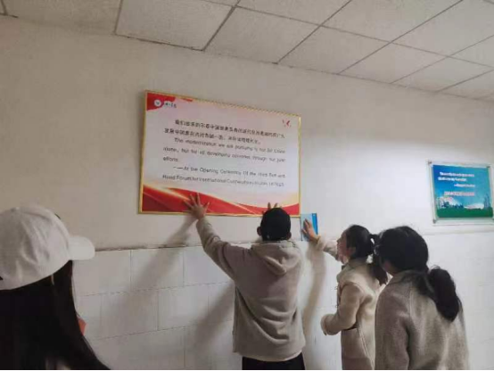 活动期间,同学们投身劳动之中,合作张贴文化宣传板,积极打扫教室卫生,参与志愿服务,践行社会主义核心价值观,为推动学校精神文明建设和社会进步贡献自己的力量,同时美化学习环境,营造更加浓厚的学习氛围。