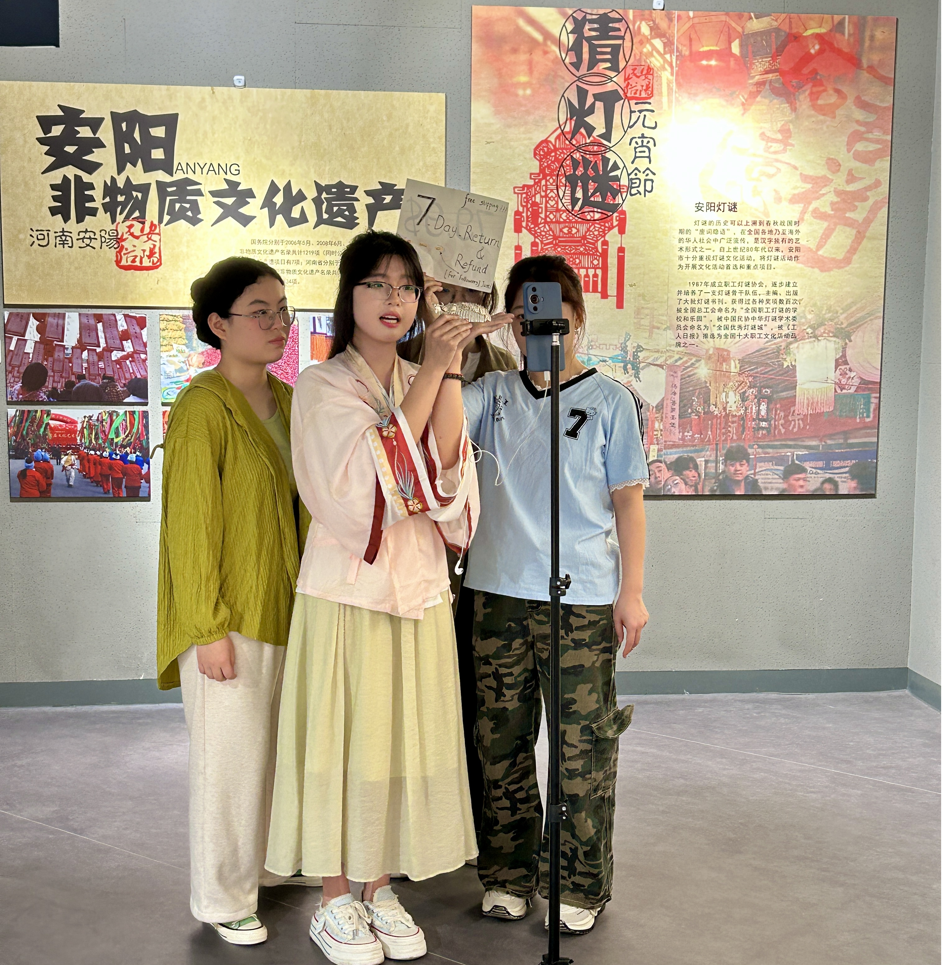 4月7日-4月11日,国产va无马网站组织学生在安阳文化展馆开展AI赋能跨境电商直播实训,锻炼跨境电商直播技能。
