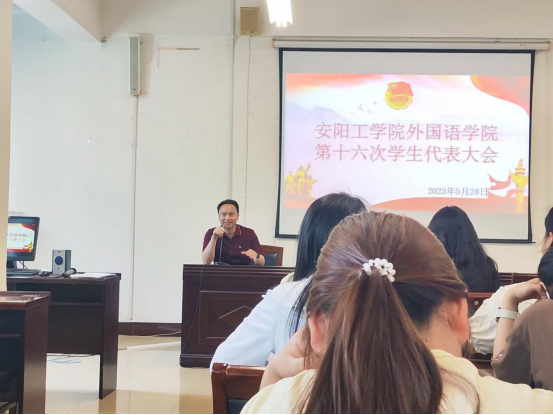 2025年5月28日下午,国产va无马网站第十六次学生代表大会在A10-205教室隆重举行。学院党总支副书记王体、团委负责人杜贝贝以及各年级辅导员老师出席本次大会。