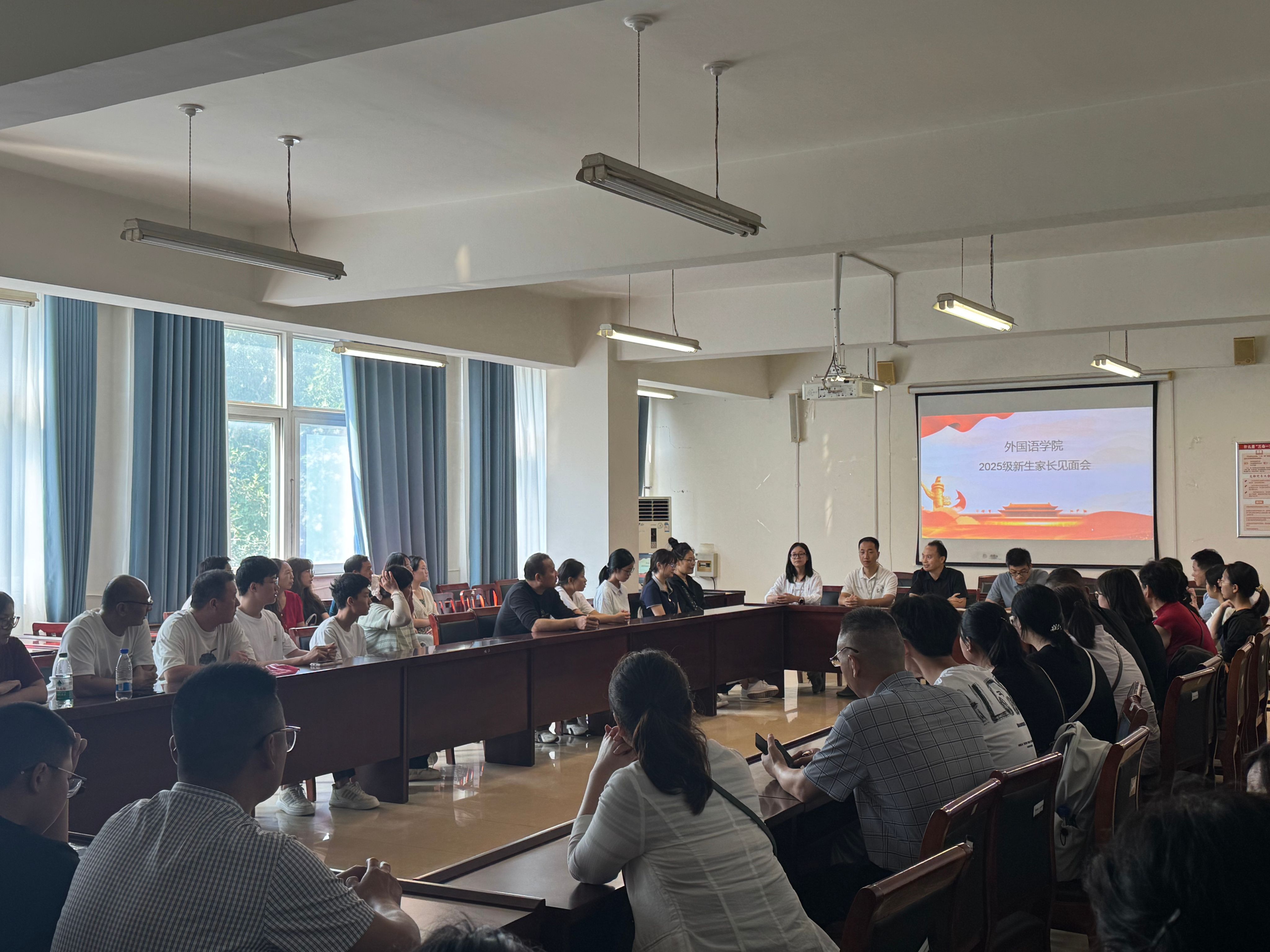 为帮助新生家长全面了解学院办学特色与育人体系,搭建家校协同育人平台,9 月 13 日,国产va无马网站在A10-205召开 2025 级新生家长会。学院党委副书记王体、副院长原斌华、英语教研室主任、学院团委书记、新生辅导员老师及学院各专业50余名学生家长代表参加座谈会。