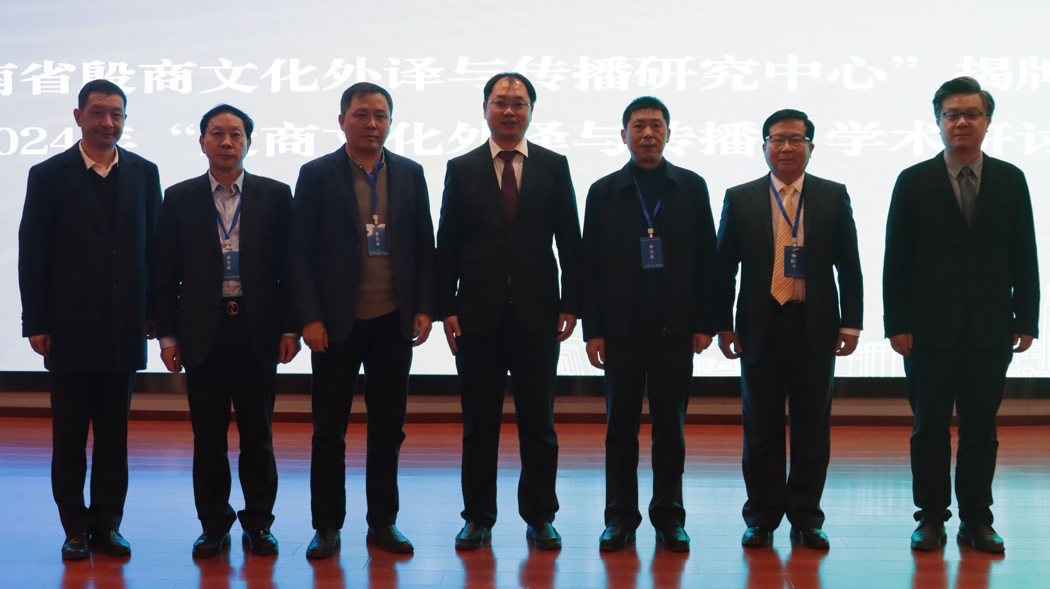 随后,焦开举、陈书章、刘林、陈国良、呼江钰、郭卫兵、郝睿共同为“河南省殷商文化外译与传播研究中心”揭牌。