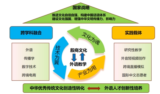 国产va无马网站专业将殷商文化这一“中华文明精神标识”转化为专业教学资源,将殷商文化与外语专业教学全方位、立体式融合,通过研究性教学、殷商文化外宣短视频创作、殷商文创产品跨境直播实践、国际中文志愿者项目 等载体,实现了“中华优秀传统文化创造性转化”与“外语人才创新性培养”的双向赋能,构建出坚定文化自信、创新国际传播话语体系、用‘Z世代’语言讲好中国故事的人才培养体系,将传播学、数字技术、跨境电商等学科融入外语教学,形成“文化为魂、技术为翼、产业为用”的复合型人才培养模式。
